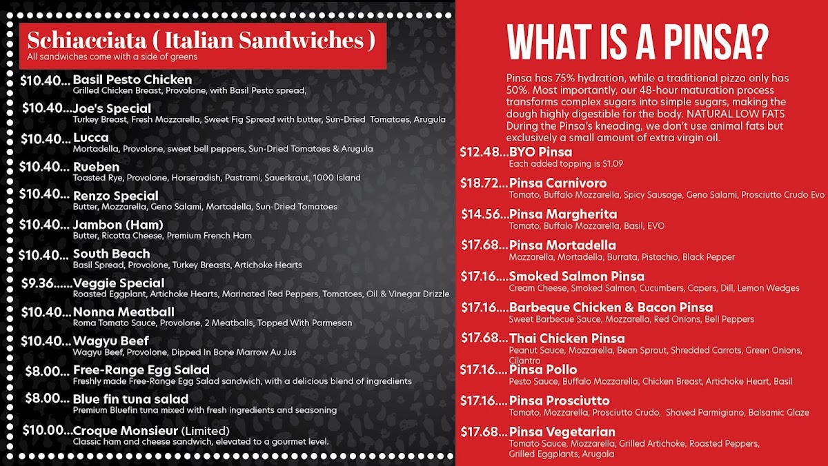 Culinary Creations: At Prego Cafe, the menu is a celebration of quality and creativity. Indulge in the famous pinsas—a gourmet twist on pizza that features perfectly baked flatbreads topped with fresh ingredients. The Thai Pinsa is a must-try for adventurous eaters, delivering a burst of flavor that will keep you coming back for more. Their Joe’s Special Sandwich, with turkey, mozzarella, sun-dried tomatoes, and a rich layer of fig spread, elegantly marries textures and tastes for an unforgettable meal. Don’t overlook their delectable Chocolate And Raspberry Bread Pudding or the Banana Cupcakes with white chocolate ganache, both of which tempt the sweet tooth with sumptuous flavors that linger long after the last bite.